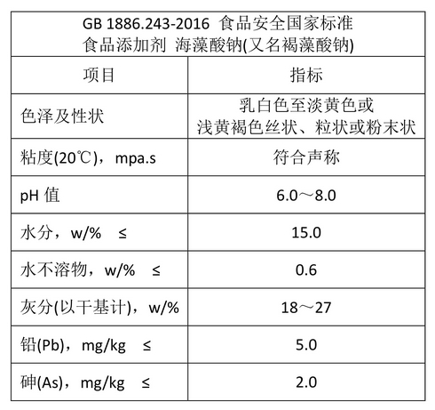 GB 1886.243-2016 食品安全國家標準 食品添加劑 海藻酸鈉(又名褐藻酸鈉),也可根據客戶需要,生產符合E401、FCC標準要求的產品。